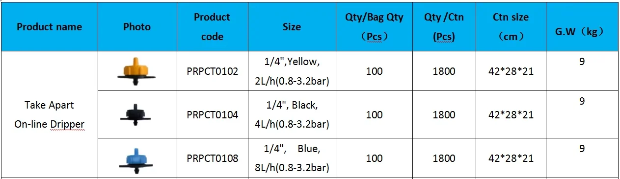 Dengan filtrasi sistem yang tepat (120 mesh) dan pemeliharaan, dripper ini dirancang untuk masa pakai 3-5 tahun dalam kondisi lapangan standar. Silakan hubungi tim penjualan kami untuk informasi rinci tentang garansi produk kami.